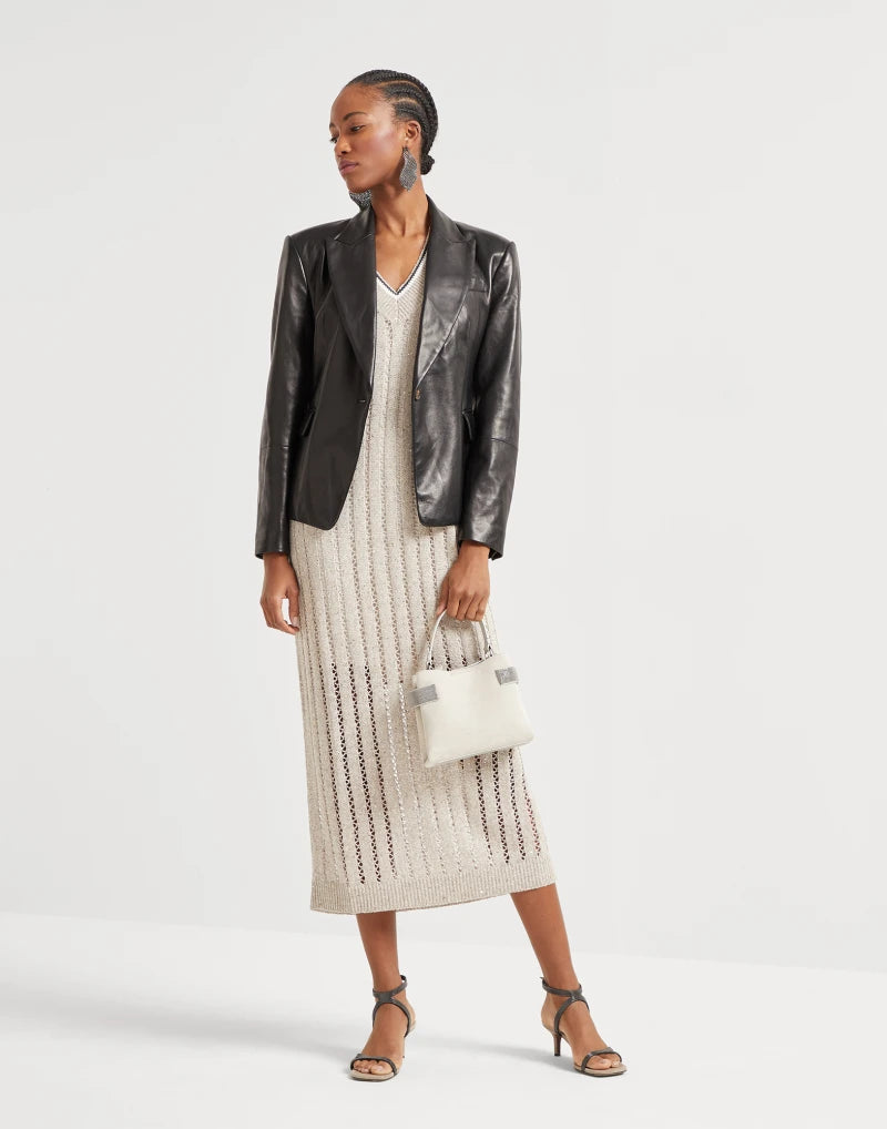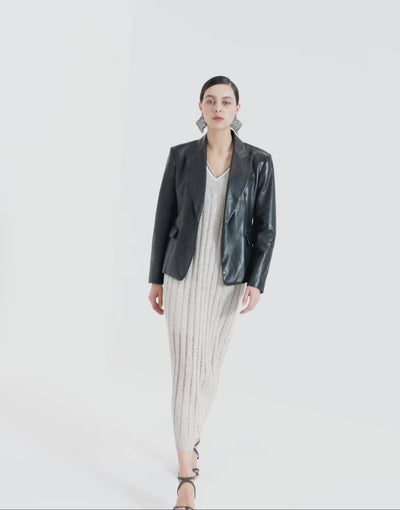 Light drape, tactile sheen, and thoughtful proportion make this piece both composed and easy - a silhouette that holds its shape yet feels weightless.